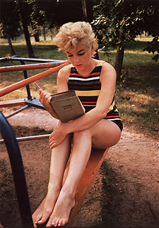 La célèbre photographie d’Eve Arnold de Marilyn Monroe lisant attentivement Ulysse de James Joyce (prise à Long Island en 1954) ou comment contrecarrer l’image de la blonde en « ravissante idiote » !