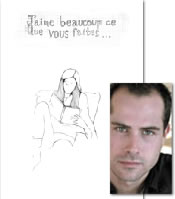 Christian Alandete, par exemple, nourri de Margueritte Duras et d’Hervé Guibert, apprécie de jeunes auteurs aussi variés que Nina Bouraoui ou Nicolas Pages (photo ci-contre à gauche, à ne pas confondre avec Martin Page, )… Ce dernier est d’ailleurs « la star » de ce second numéro avec un travail original de mise en abîme de son dernier roman « Super G » paru en 2005 chez Flammarion.