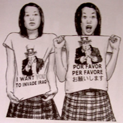 Les deux derniers chapitres, un peu moins intéressants sont consacrés à la jeunesse Tokyoïte : les kogals délurées et insouciantes qui s’habillent en mini-jupe rose, sac Vuitton hors de prix, « loose sock » ou encore imprimé panthère, usent et abusent du téléphone portable dans Shibuya, se font prendre en photomaton illustré ou encore participent à des cosplay (concours de costume de personnage de manga). Une vie débridée avant de devenir de sages « office ladies »…). Pour finir il traite du monde vu du Japon avec des reproductions de ses dessins de presse pour un grand journal japonais l’Asahi Shimbun (de la guerre en Irak à l’élargissement de l’Union Européenne en passant par la réélection de Poutine…)
